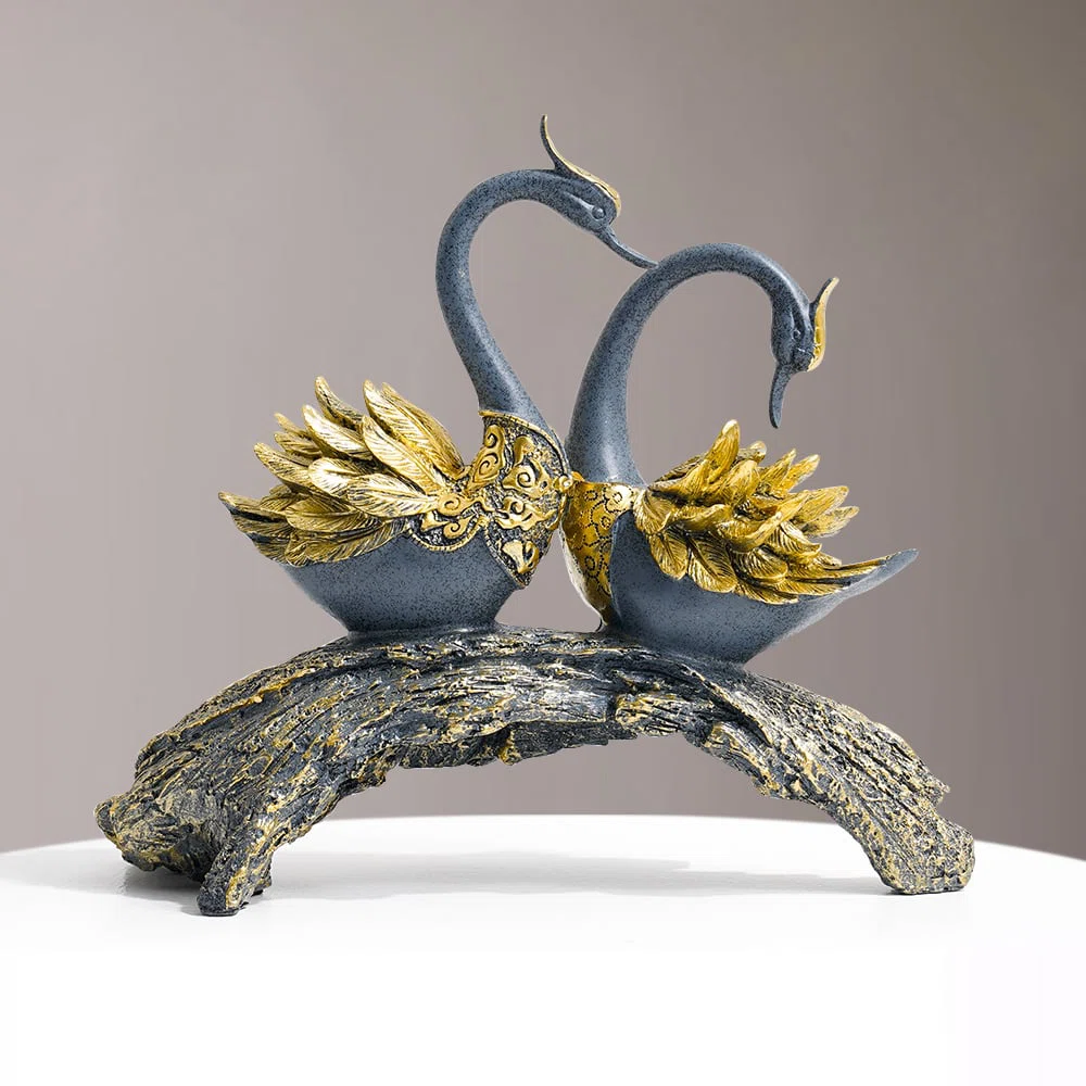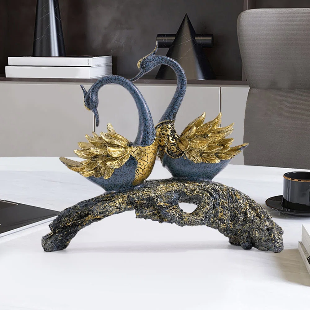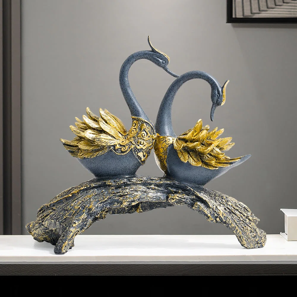 Gold Modern Simulation Couple Swan Sculpture – Elegant Decorative Art for Home & Living Spaces