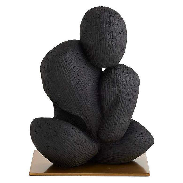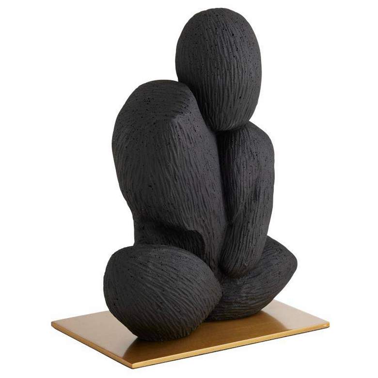 Free-form shapes of charcoal ricestone composite form a striking totem that is both meditative and textural. Different when viewed from every angle, it is secured on a base of steel-plated in antique brass.