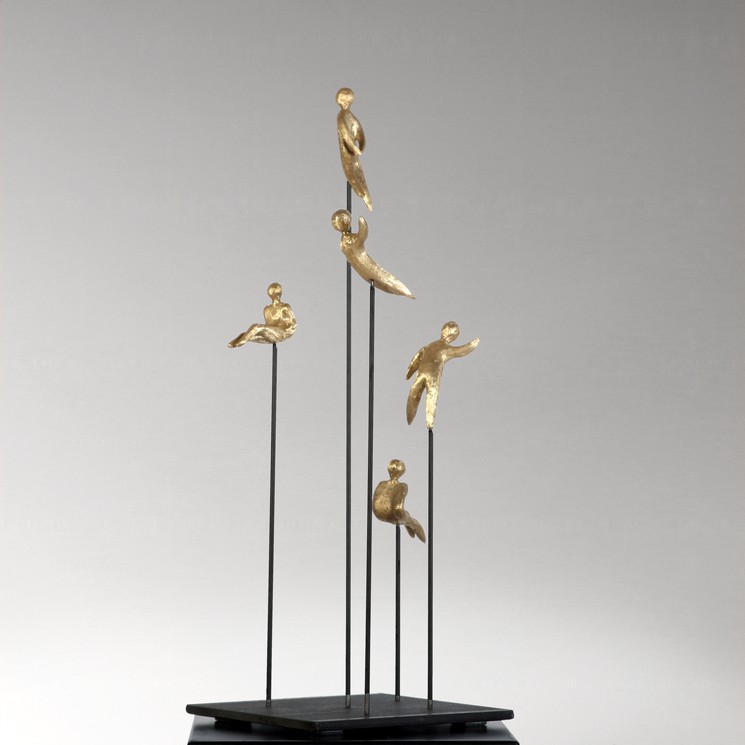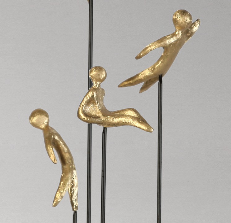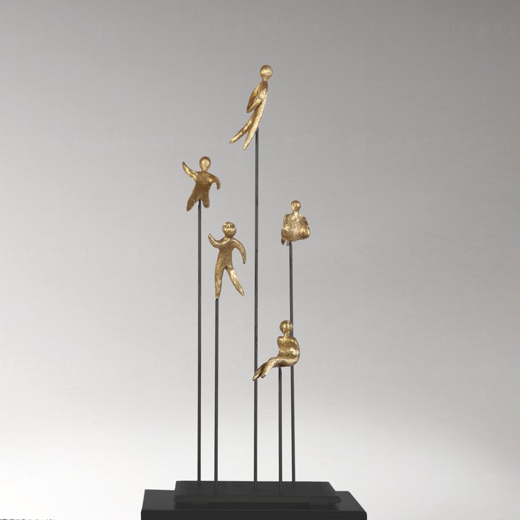 Elevate your space with this stunning gold sculpture, featuring elegantly crafted figures poised on slender sticks. This unique piece captures the essence of movement and connection, making it a perfect focal point for any room. Its luxurious finish adds a touch of sophistication, while the intricate design invites admiration from every angle. Ideal for art enthusiasts and those looking to enhance their decor, this sculpture is not just an ornament; it’s a conversation starter.