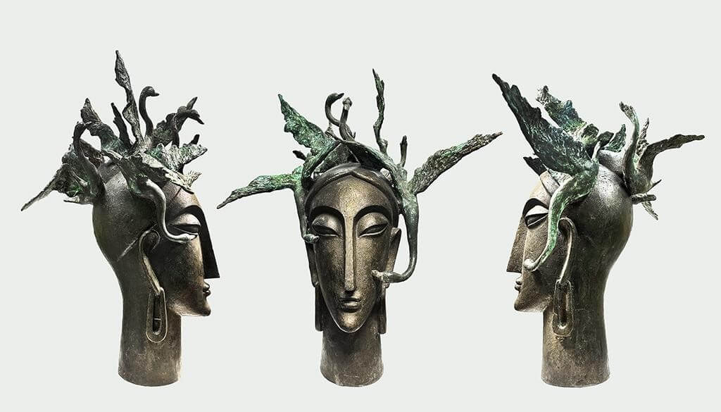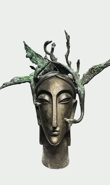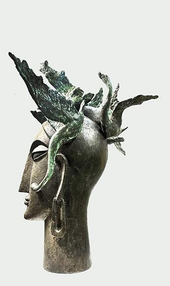 Elevate your space with this exquisite bronze sculpture of a woman’s head, adorned with delicate birds that symbolize freedom and grace. Crafted with meticulous attention to detail, this stunning piece captures the essence of femininity and nature, making it a perfect addition to any art collection or home decor. Its timeless design and rich patina will enhance your environment, inviting admiration and conversation. Embrace the beauty of artistry with this unique sculpture that embodies elegance and sophistication
